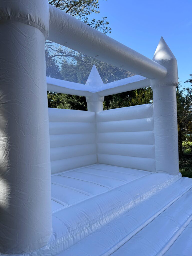 Damit es für eure kleinen Gäste genauso märchenhaft wird, bieten wir eine wunderschöne, weiße Hüpfburg zur Miete an!