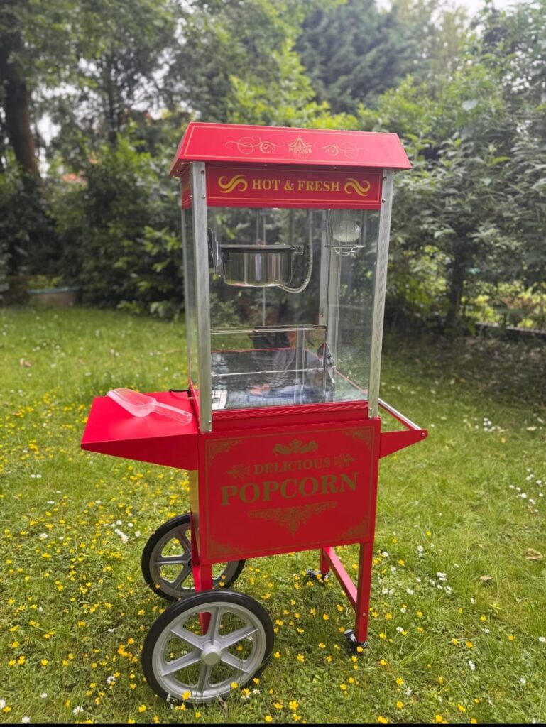 🍿 Popcornmaschine auf Wagen mieten – Klassischer Kino-Flair für dein Event! 🎬✨